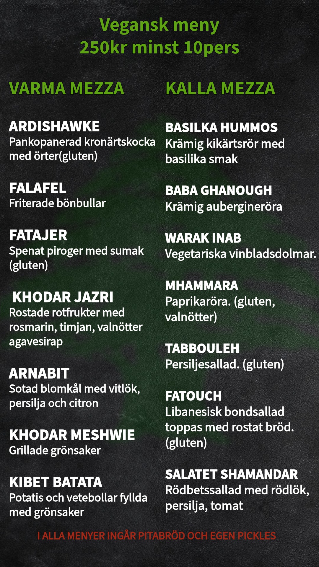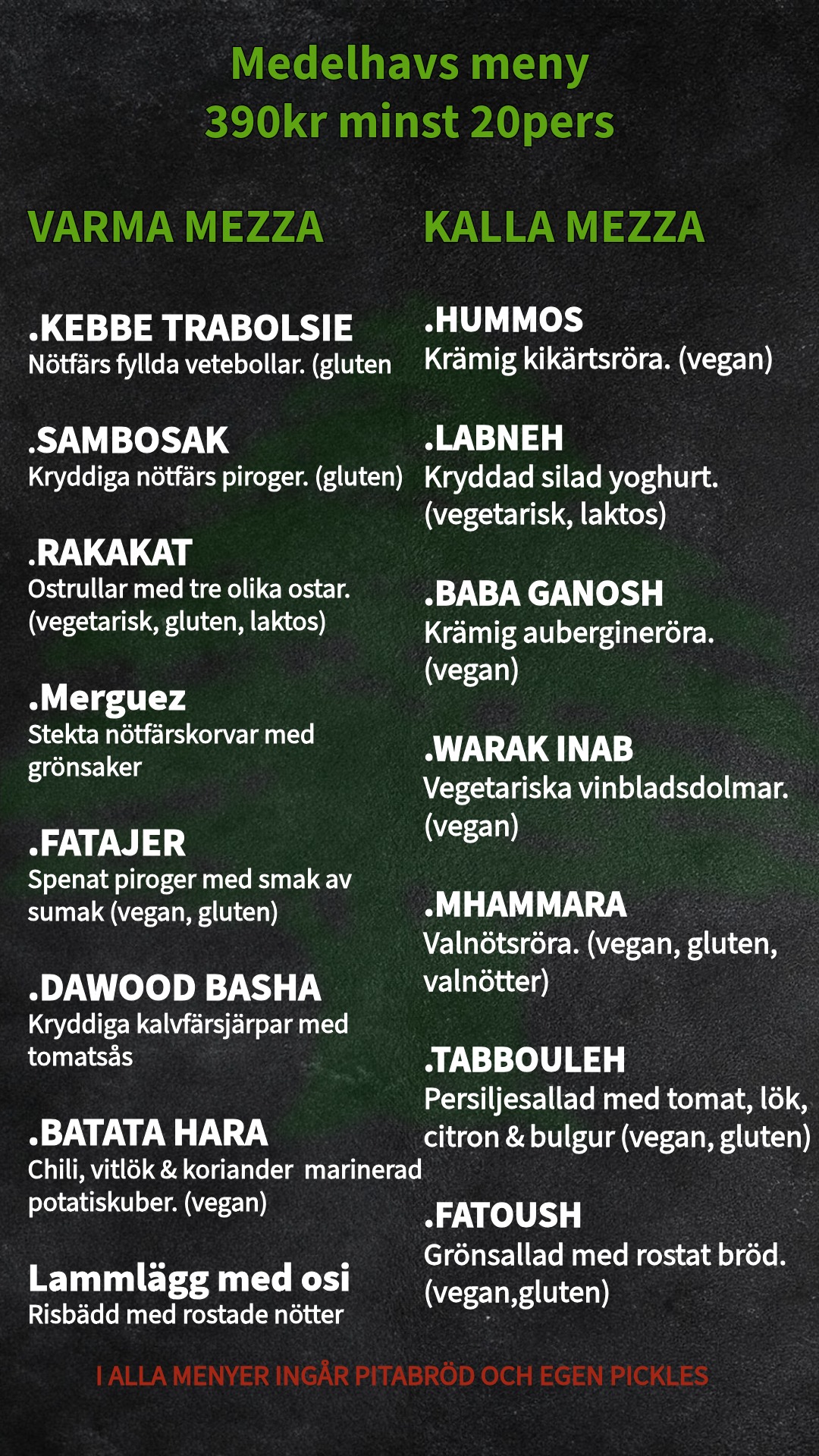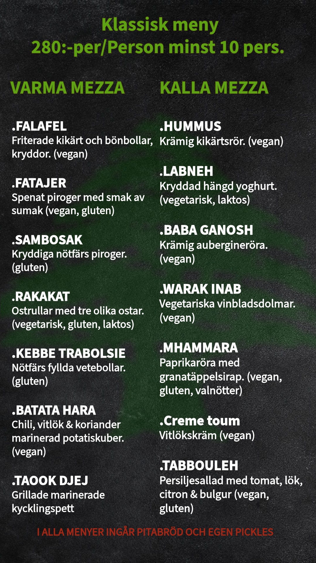Det är enkelt att beställa catering från oss! Vi behöver ha din beställning senast fyra arbetsdagar innan leverans. Meddela oss om du har önskemål om specialkost på grund av allergier eller annat så ordnar vi alternativa rätter. Minsta beställning av catering från oss är 10 personer av varje meny/rätt